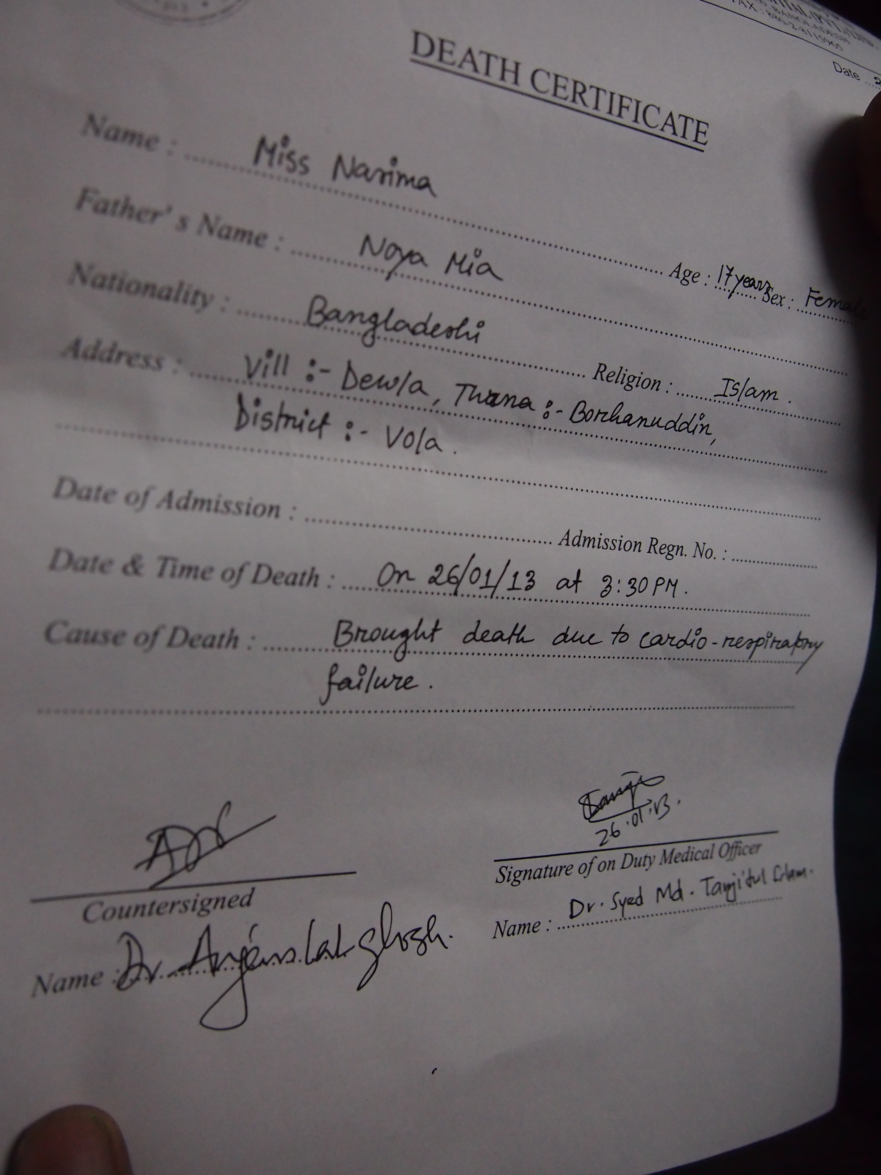 However, the death certificate counter signed by him said,âbrought dead due to cardiac respiratory failure.â All of a sudden, all six of them drop dead and died of cardiac respiratory failure!