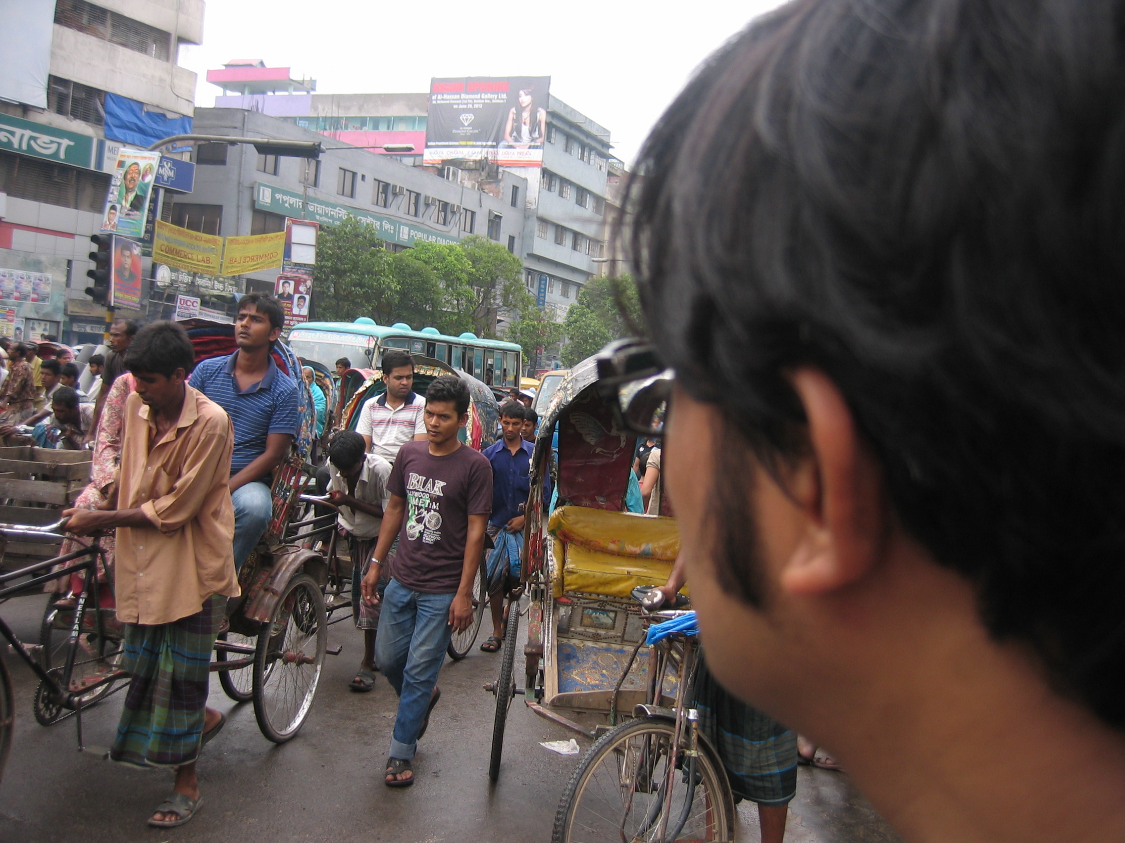“I mean all that is happening, these hartals…at the end of the day I am a rickshawalla…no matter who comes in power I have to eke out a living from rickshaw pulling and today I am scared of coming to roads”. I add, “I am scared too!…..I don’t want to die from a Molotov cocktail”