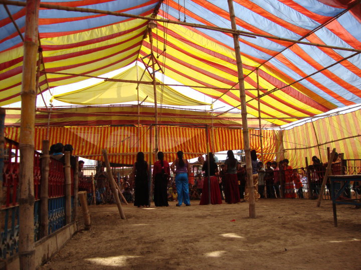 (ছবি: যাত্রাপালার শিল্পীরা নৃত্য পরিবেশন করছেন। প্রায়ই তাদের “অশ্লীল” গালি খেতে হয়। আলোকচিত্রী: নাসরিন সিরাজ এ্যানী)